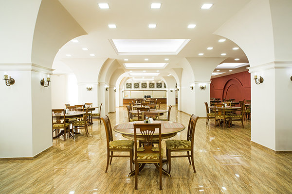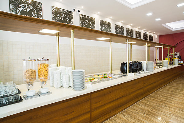 Основной ресторан — завтрак (08:00—10:00), обед (13:00—15:00), ужин (18:00—20:00) по системе «шведский стол». Чай, кофе и безалкогольные напитки (на ужин Дресс-код)
