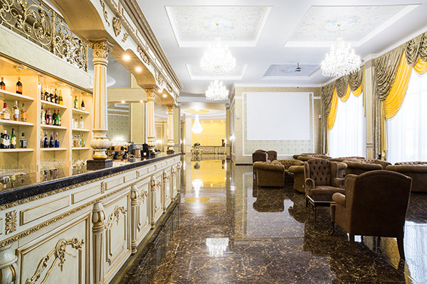 Комфортные диваны из натуральной кожи, а также стильные полы из мрамора лишь подчеркивают всю изысканность гранд-отеля. Еще богаче здание смотрится поздним вечером, когда подсветка гостиницы так и манит, будто призывая вас заглянуть в свое изысканное убранство.