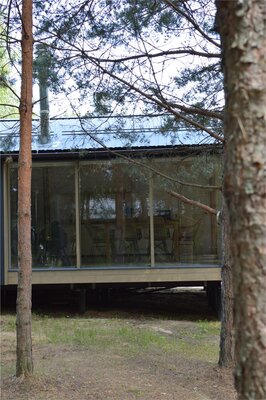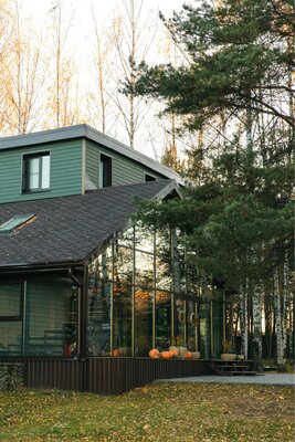 Природа здесь царит во всей красе: тишина, чистейший воздух, пушистые сосны, белки, резвящиеся на территории, и река, манящая к себе.