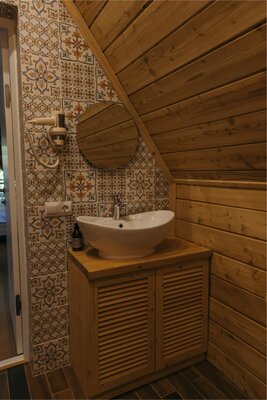 Просторная атмосферная деревянная баня для дружеских посиделок и приятного парения. Создана специально, чтобы Ваш разум отдохнул, а тело расслабилось и получило заряд бодрости и сил. Вместимость до 8 человек.