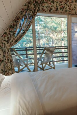 В уютных панорамных домах или номерах с индивидуальным интерьером Вы сможете насладиться атмосферой комфорта и единения с природой.