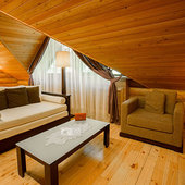 В вашем распоряжении 24 коттеджа трёх категорий, а также гостиница, в которой тоже 24 номера трех категорий. Выберите любой номер или коттедж, по мере собственных желаний. Природную гармонию леса и реки Волга органично дополнят современный SPA-центр, банный комплекс, крытый и открытый бассейны дома отдыха. А три ресторана изысканной кухни и ночной клуб не дадут вам надолго забыть и о привычных городских развлечениях.
