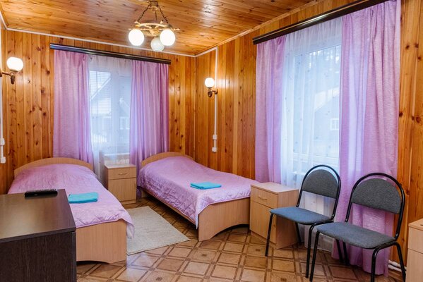 В административном здании базы отдыха расположено два номера (эконом) на два и три места с туалетной комнатой. Душ на территории загородного комплекса работает круглосуточно.