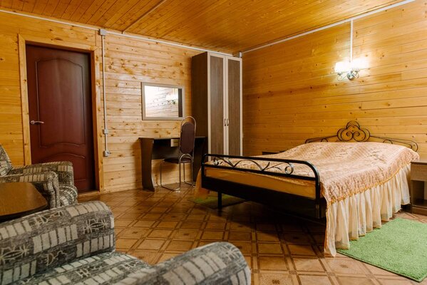 К вашим услугам 32 комфортабельных номера в уютных деревянных коттеджах (до 90 гостей). На территории комплекса вы найдете: