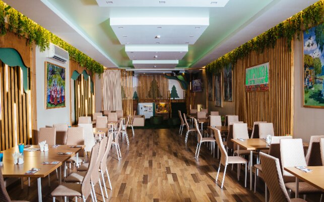 Выбирайте любую обеденную зону: уютные мягкие диваны у окна, небольшие столы на двоих в центре зала или импровизированную веранду с живописными видами на «Нью-Ветлугу».