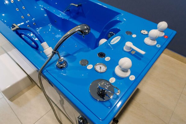 Гидромассаж — гидромассажные ванны. Кушетка бесконтактного массажа с системой электронного индивидуального программирования. Новейшая технология в области медицинского массажа. Благодаря мембране, пациент ощущает состояние невесомости, мягкие массажные движения воды из форсунок, при температуре 30-35 градусов массажируют тело по всей длине. Применяется в косметических и медицинских целях. Рекомендовано при травмах позвоночника, остеохондрозах, сколиозах, ревматоидных артритах, варикозах, устраняет спазмы. Водолечебная ванна для подводного душа-массажа (аэромассаж), применяется для массажа спины, позвоночника и конечностей, при профилактике опорно-двигательного аппарата, ДЦП, общей релаксации, снижения стрессов, восстановления сна. Повышает тугор и эластичностькожных покровов. Массажи рекомендуется проводить курсом от 10 до 15 процедур, для достижения эффекта. Имеются противопоказания.