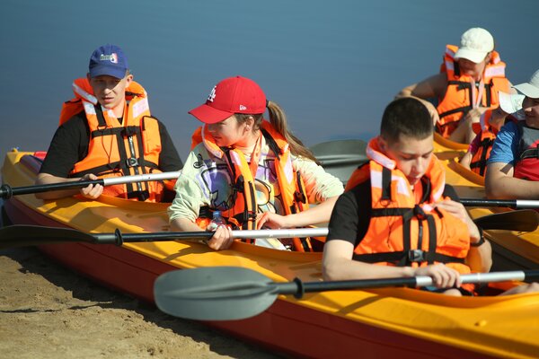 Сплав проходит на безопасных каркасных байдарках (3 места в каждой), рафт (6 мест в каждой).