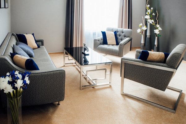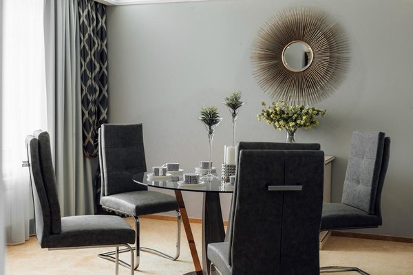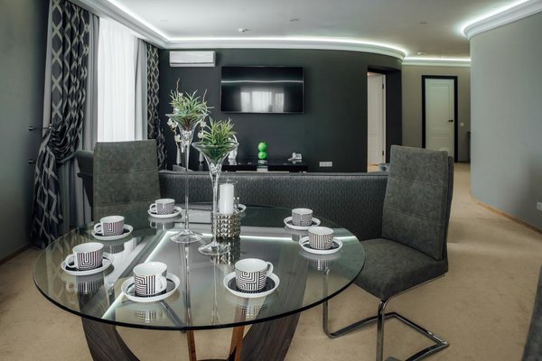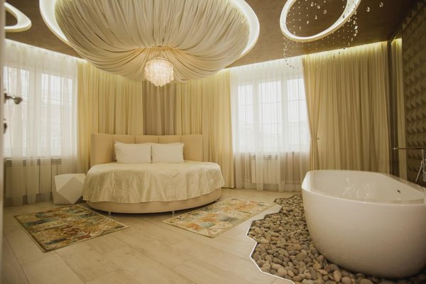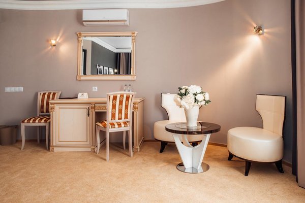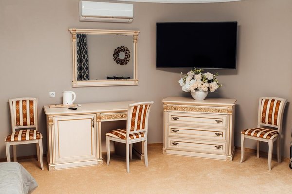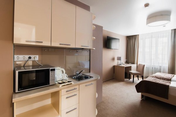 Все номера отеля имеют современный изящный интерьер, выполненный по проекту известного дизайнерского бюро Михаила Новинского (г. Москва). Оборудование номеров отвечает самым высоким требованиям гостей и гарантирует им комфортное пребывание. Номерной фонд представлен номерами нескольких категорий: «Стандарт одноместный», «Стандарт двухместный», «Стандарт Семейный», «Комфорт двухместный», «Комфорт Семейный», «Романтик» «ВИП-номер». В номерах категории «Комфорт» установлены миникухни с микроволновой печью.