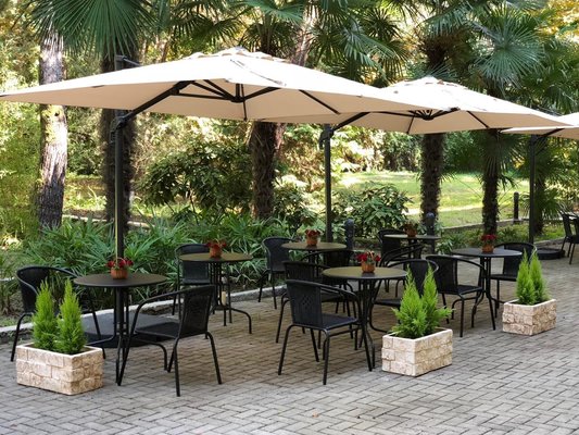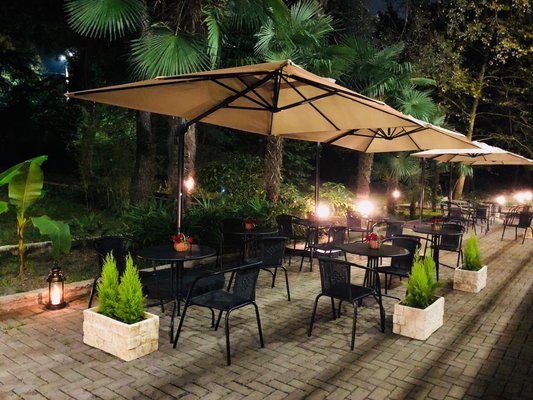 Летний ресторан — во внутреннем дворе с европейской кухней с 7:00-22:00