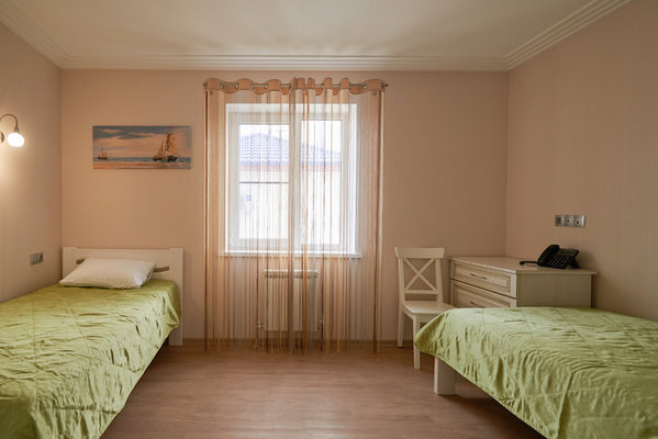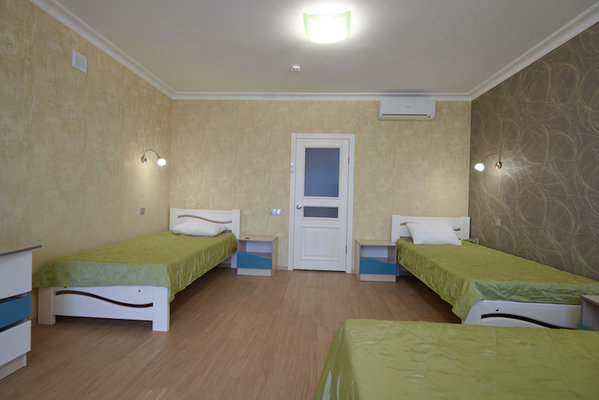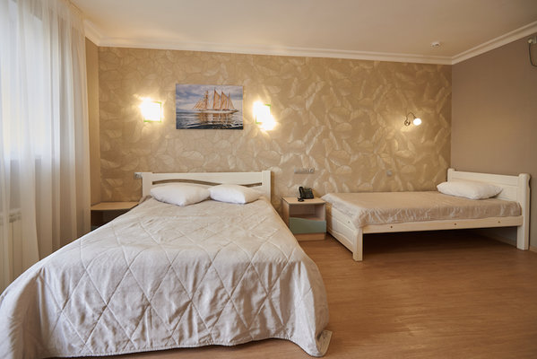 Трехэтажное здание отеля с мансардным этажом разместилось на небольшой закрытой и благоустроенной территории. Отель предлагает отдыхающим номера четырех категорий комфорта и разной вместимости. Все номера укомплектованы стильной современной мебелью светлых оттенков, есть телевизор, кондиционер, в категории Люкс и Бизнес имеется собственный санузел с душевой кабиной, в Стандарте и Экономе душевые расположены на этаже.