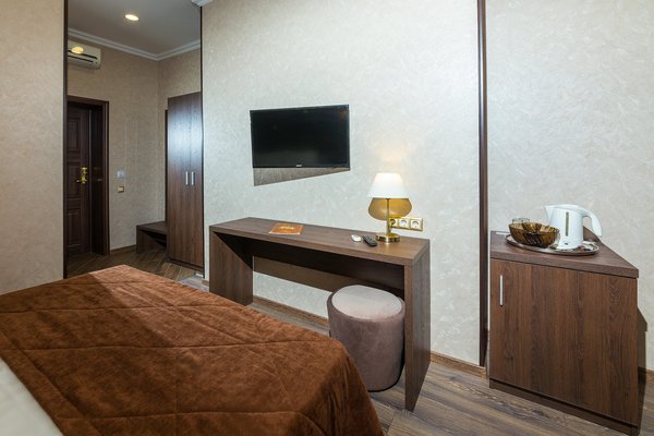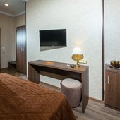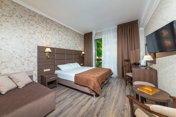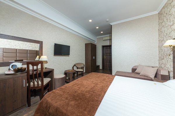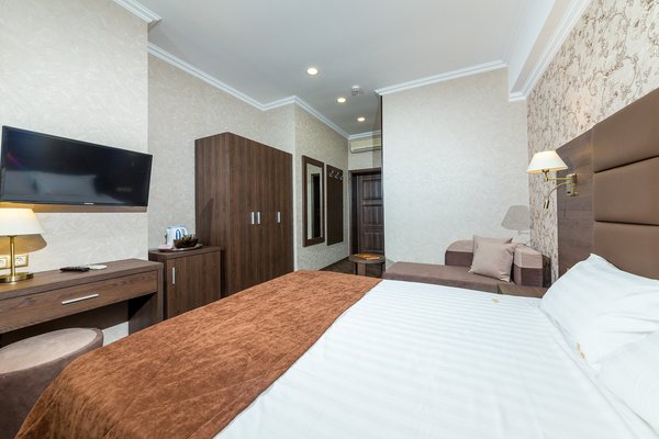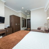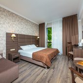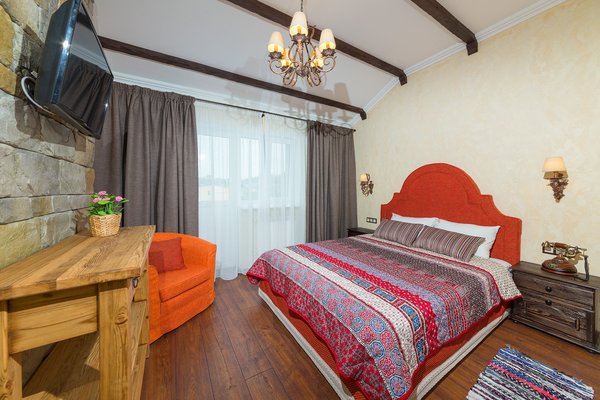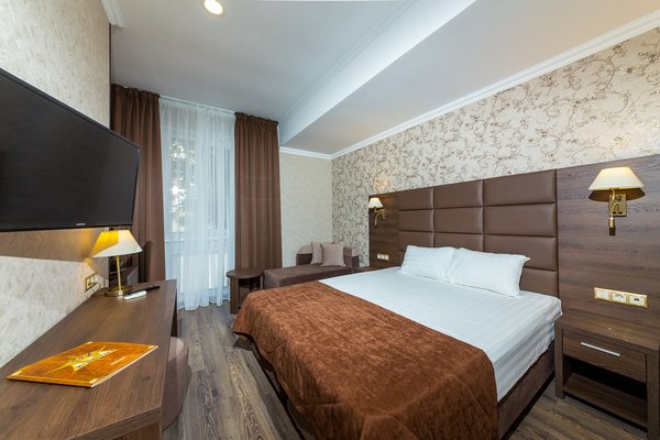 Преимущество люкс-отеля – это просторные номера, роскошная мебель, английская сантехника, климатическое и бытовое оборудование европейских марок. Обученный приветливый персонал с опытом работы и личное внимание к каждому гостю создадут для вас идеальные условия для комфортного отдыха.