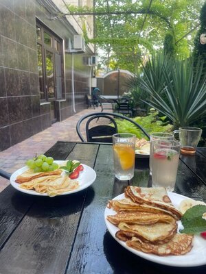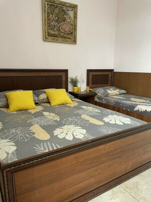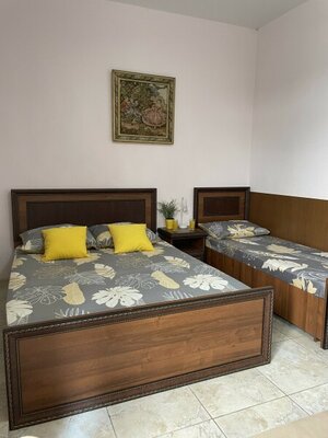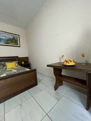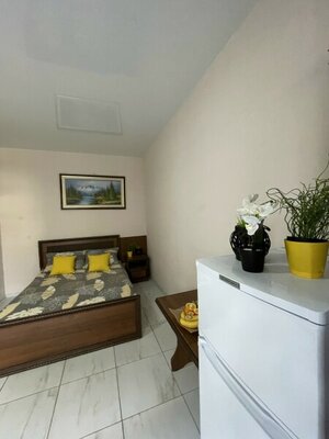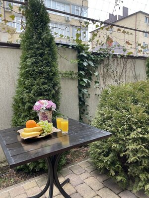 Жили тут две недели по работе. Нас радушно встретили и угостили вкусными домашними напитками. Номер был идеально чистым, с хорошим постельным бельем и удобными кроватями. Все точно соответствовало описанию и фотографиям. Во дворе было очень красиво и уютно, розы кругом, красота...