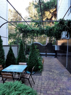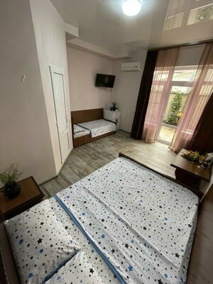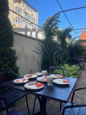 На территории гостевого дома расположен небольшой сад с беседкой, зоной для мангала, детская игровая площадка и бассейн. До берега Черного моря всего 15 минут пешком, а до центра города можно добраться за 5 минут.