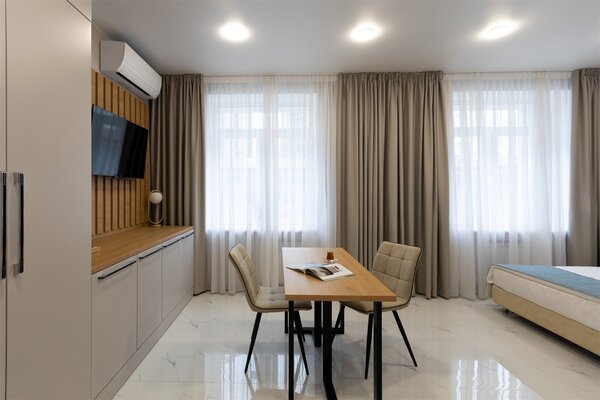 Комфортабельные и стильные номера, оформленные в современном стиле, предоставят вам максимальный комфорт, независимо от цели вашего визита в Сочи. Идеальное решение как для семейного отдыха, так и для деловых поездок.