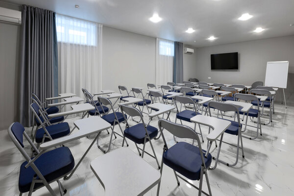 - Вместительность до 30 человек: 30 стульев с пюпитрами.