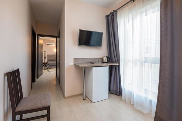 Расположение на первой береговой линии позволит вам наслаждаться морским бризом и видом на море. Выбор номеров: однокомнатные и двухкомнатные, стандартные и апартаменты с кухней. Современные удобства: индивидуальный санузел с косметическими наборами, халатами и тапочками, кондиционер, телевизор и холодильник в каждом номере.