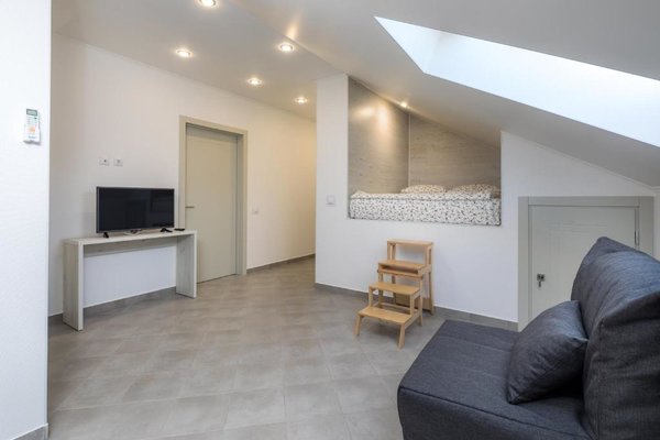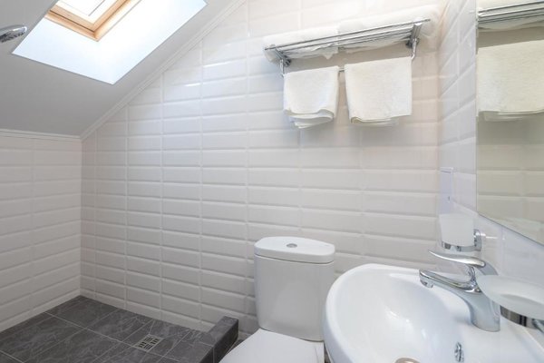Городской пляж находится всего в 3 минутах ходьбы — это галечное побережье с раздевалками, шезлонгами, навесами и водными развлечениями.