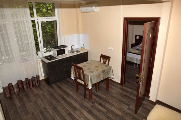 Апартаменты в отеле предназначены для размещения до четырех человек и находятся на первом этаже. Внутри: две отдельные комнаты, включая мини-кухню с необходимой посудой и бытовой техникой. Установлены телевизоры и кондиционеры. В ванной комнате есть душевая кабина и фен.