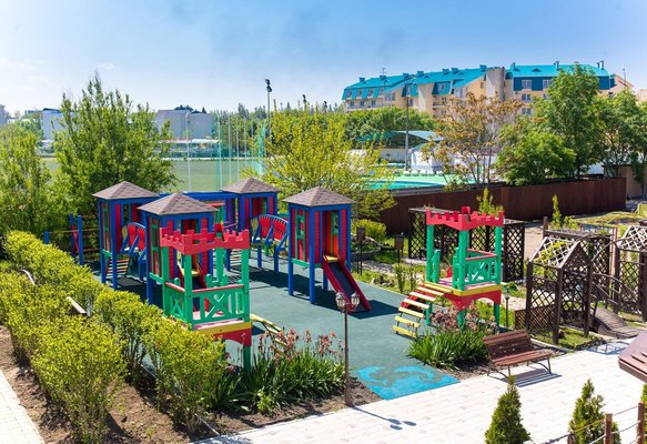 Территория отеля достаточно благоустроена и обеспечена разнообразными объектами, которыми гости могут пользоваться для занятия спортом и для увлекательного времяпрепровождения. Здесь есть в наличии бильярдные столы, настольный теннис, также имеется спортивное поле, где играют в волейбол и мини футбол. Детям тоже предоставляется широкий выбор развлечений – качели, карусели, горка, песочница.
