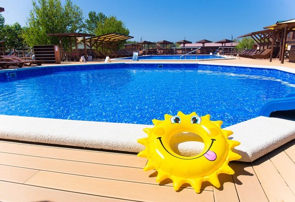 детский бассейн — открытый, 10*10, вода пресная, подогреваемый, горки, пользование бассейном входит в стоимость, расположен на территории базы