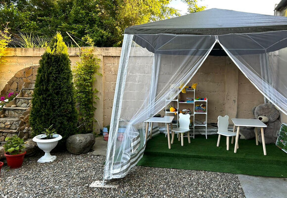 Освежающий бассейн подарит прохладу в жаркие летние дни. Для маленьких гостей создана специальная игровая зона с игрушками и навесом-шатром, где они смогут весело провести время на свежем воздухе. Забудьте о скуке и позвольте детям завести новые знакомства.