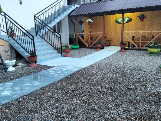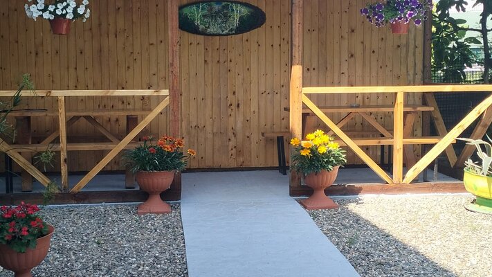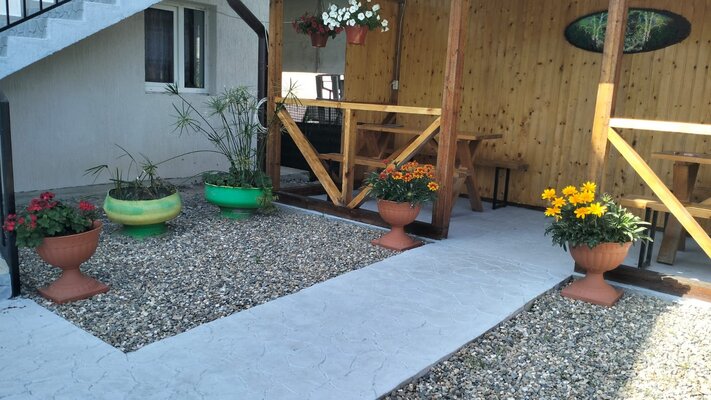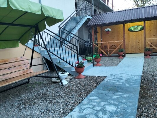 Чтобы ваш отдых соответствовал индивидуальным предпочтениям и бюджету, предлагаются номера эконом-класса и номера с удобствами. Ухоженный двор, украшенный цветущими растениями, станет вашим личным райским уголком для расслабления. Ощутите прелесть летних вечеров на свежем воздухе, общаясь с близкими или наслаждаясь сочным шашлыком под звездами.