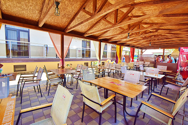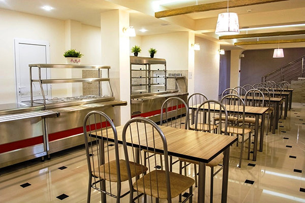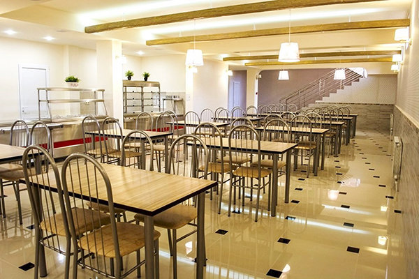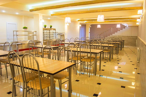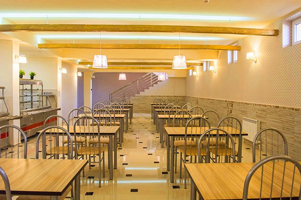 Обеденный зал — в здании; кухня: европейская; время работы: с 08-00 до 20-00