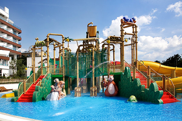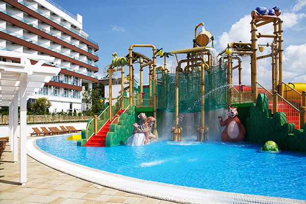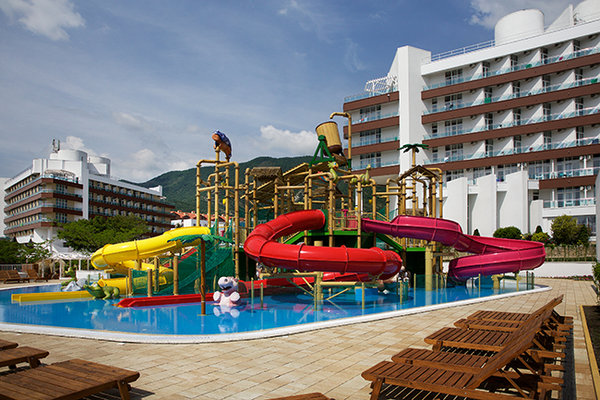 Аквапарк — детский. Режим работы: 09:00-18:00. 3 открытых подогреваемых бассейна для детей 1-18 лет, t 28 *C Бассейн с аттракционом "Осьминог" (для детей 1-3 года). Анимационный бассейн. Аква-плей для детей 3-8 лет.