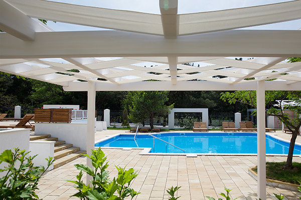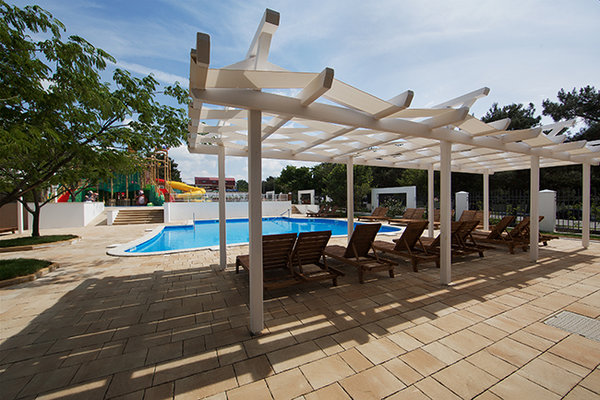 открытый — 4 открытых бассейна: спортивно-анимационный взрослый с подогревом 26-28*С; детский с подогревом и аквагорками 28*С, подростковый не подогреваемый; детский.