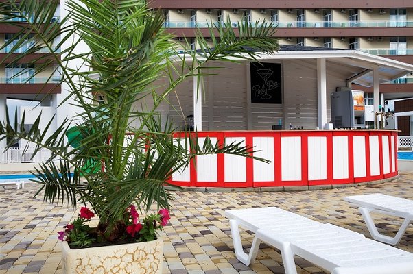 Бар у бассейна — "Pool bar": алкогольные напитки, безалкогольные напитки, прохладительные напитки. Снеки к пиву: поп-корн, сухарики, орешки.
