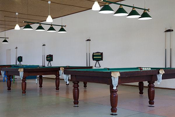 Бильярд — 2 стола для русского бильярда, 2 стола для американского бильярда, 2 стола для детского бильярда. Режим работы: с 9:00-00:00.