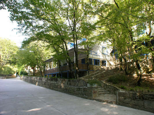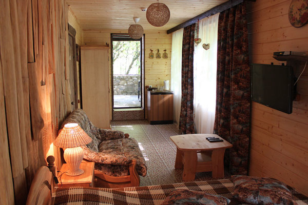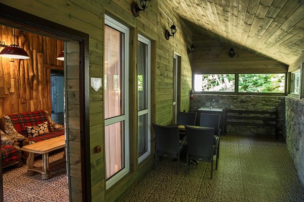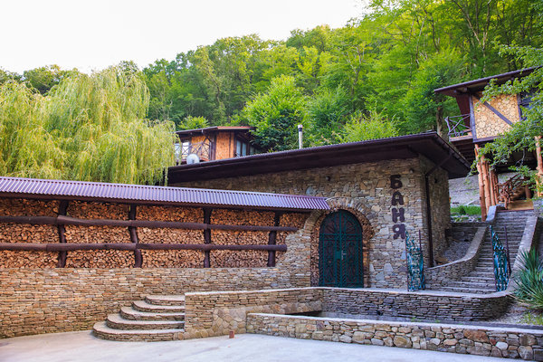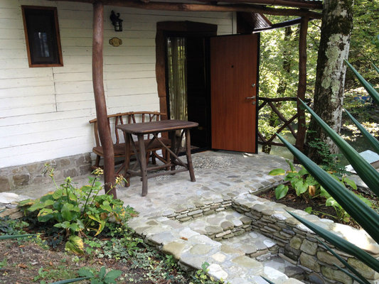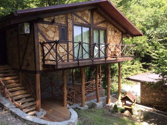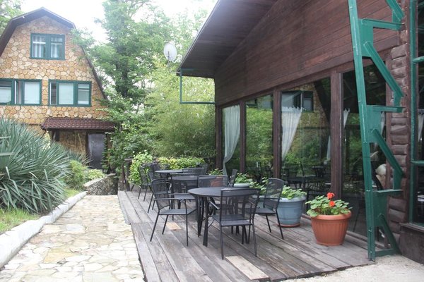 Пансионат «Альфа» уютно расположился в живописном горном ущелье. На его лесных склонах разместились 30 эко-коттеджей с верандами, занимающие общую площадь в 6 гектаров. Неповторимую атмосферу здесь создают чистейший воздух, напоенный ароматами моря и леса, а также хрустальная родниковая вода, питающая горный ручей, который, протекая по территории, образует живописное озеро.