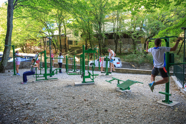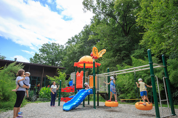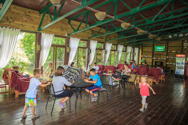 Для полноценного отдыха пансионат предлагает широкий спектр возможностей: банный комплекс, уютную гостиную у озера, зону барбекю, спортивную и тренажерную площадки, мини-клуб, детскую площадку, кинозал и библиотеку. Извилистые каменные дорожки, мастерски вписанные в ландшафт, вьются между коттеджами и пересекаются с лестницами, ведущими к центральной прогулочной аллее.