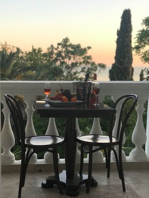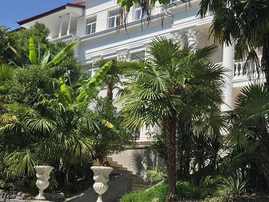 Отель представляет собой яркий пример архитектуры начала ХХ века, располагается на стыке двух воздушных потоков: горного сухого и морского влажного, что позволяет получить максимальный эффект отдыха на море. К пляжу ведет тропа через обширную парковую зону, которая создает особую атмосферу. Расстояние до моря составляет 430 метров.