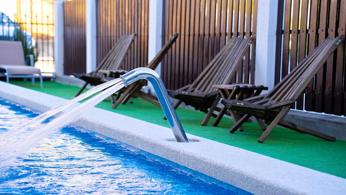 Отель «Alpen House» радует своих гостей открытым бассейном с гидромассажем, где кристально чистая вода поддерживается на комфортной температуре благодаря современным системам подогрева.