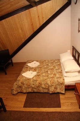 Отдыхая в Красной поляне на турбазе МО, захотелось остаться ещё. Зашёл в интернет и на одном известном сайте забронировал этот "Альпийский двор". Отдыхал в мае 2017 года. На сайте попросили 800 руб за номер двухместный или трехместный. Цены одинаковы, скорее всего и номера тоже, за исключением что в нашем номере была ещё третья одноместная кровать. Если отдыхать с ребёнком...
