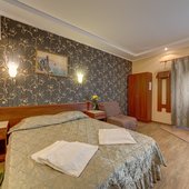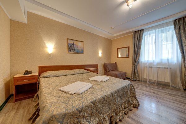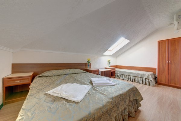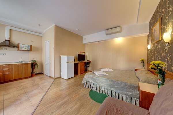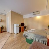 Светлые кондиционированные номера гостевого дома оформлены в классическом стиле, в теплой цветовой гамме. В каждом из них есть телевизор, холодильник и собственная ванная комната.