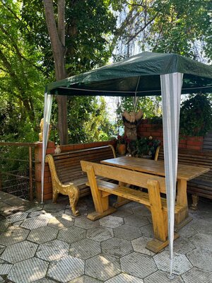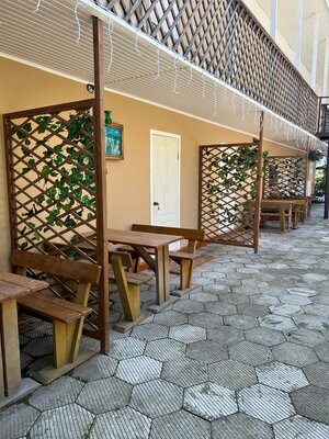 К вашим услугам: бесплатный Wi-Fi, общая кухня, уютные беседки, мангальная зона, прачечная, гладильные услуги, уборка по запросу, трансфер, бесплатная парковка (за территорией) и детские кроватки.