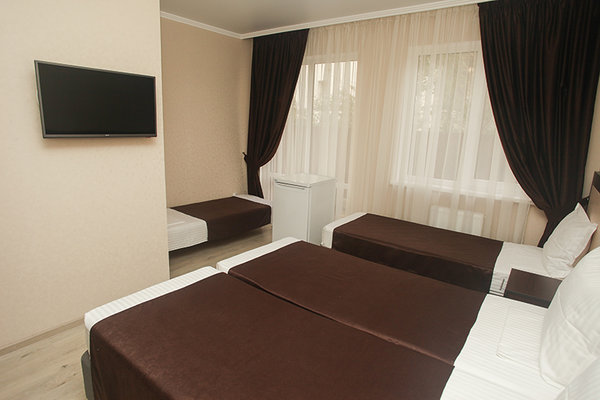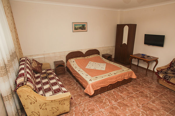 На берегу моря, в уютном поселке Кабардинка рядом с Геленджиком, расположился гостевой дом под названием «Ангелина». На территории находится четырехэтажный корпус с различными категориями номеров. Благоустроенный двор подходит для приятных прогулок и непринужденных бесед между отдыхающими. Апартаменты есть стандартного, студийного и люксового типа. Все они располагают просторными балконами с летней меблировкой. Жилые помещения оснащены новой мебелью, отличными бытовыми приборами и световыми элементами. Санузлы укомплектованы душевыми. Питаться гости могут в рядом расположенных кафе и ресторанах курортного поселка. В гостевом доме создана общая кухня, где есть бытовая техника, посуда и столовые приборы. Приобрести продукты питания можно на местном рынке или в магазинах.