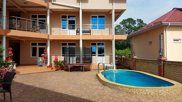 Мини-гостиница эконом-класса «Ангелина» находится в Адлерском районе Краснодарского края – в 5 километрах от центра Адлера. Работает отель в пляжный сезон и приглашает гостей насладиться отдыхом в Сочи с мая по середину октября. Одновременно здесь могут разместиться 35 человек.