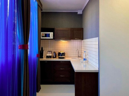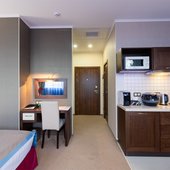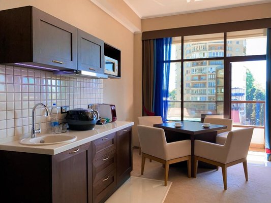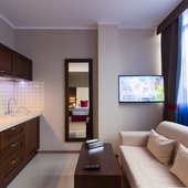 Апартаменты с кухней оснащены всем необходимым для проживания. Все номера имеют: