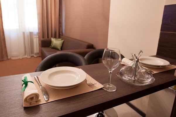 На территории отеля Горная Резиденция работает ресторан, где подают блюда европейской кухни. На собственной кухне можно самостоятельно приготовить или разогреть еду.
