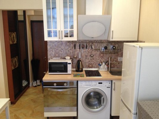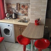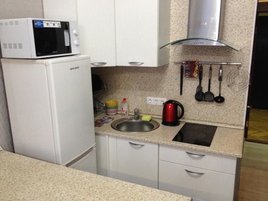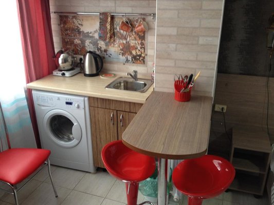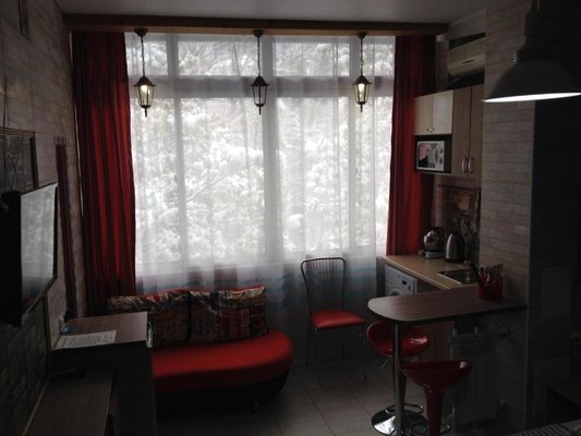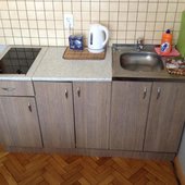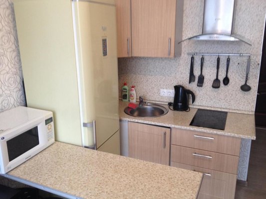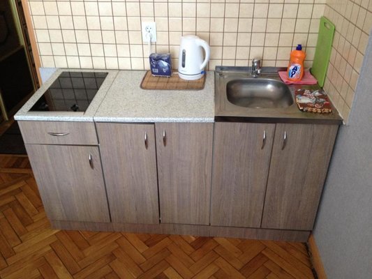 На кухне найдется все необходимое для приготовления еды. В кухне : холодильник, посуда и плита, МК-печь и электрический чайник. В ресторане на территории «Миндаль» подают разнообразные блюда русской и европейской кухни, также стоит попробовать алкогольные коктейли и прохладительные напитки. Гости могут посетить кафе, бары и столовые за территорией, они находятся вблизи отеля.