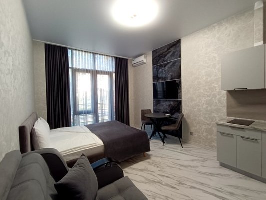 Апартаменты в центре Сочи (Мамайка) находятся в апартаментном комплексе «Полтавский». Территория вокруг дома имеет ухоженные зеленые насаждения с современным ландшафтным дизайном.
