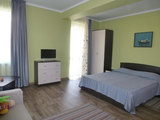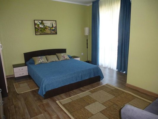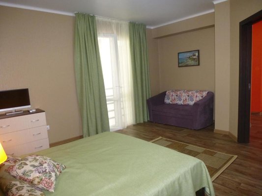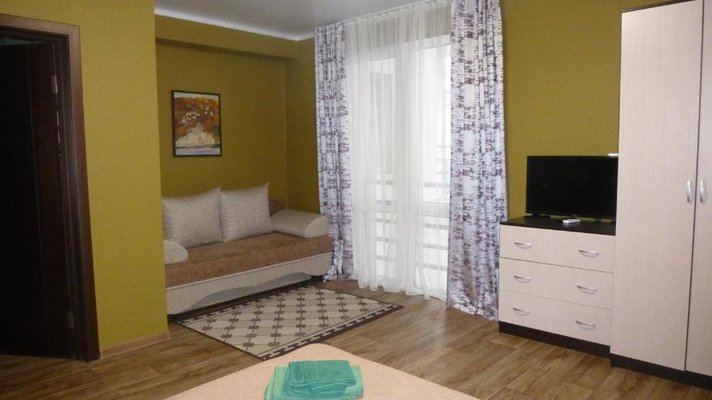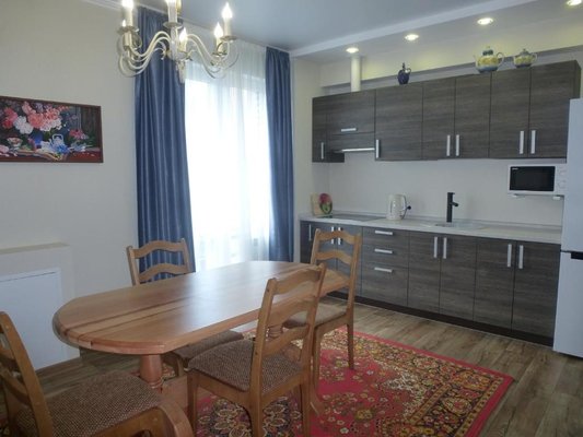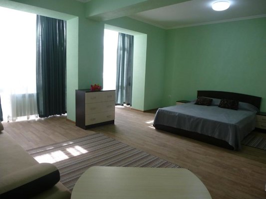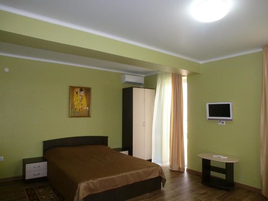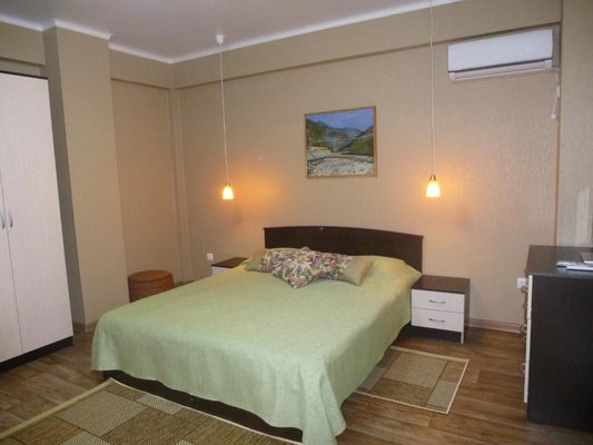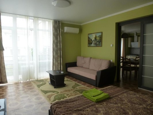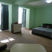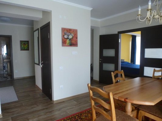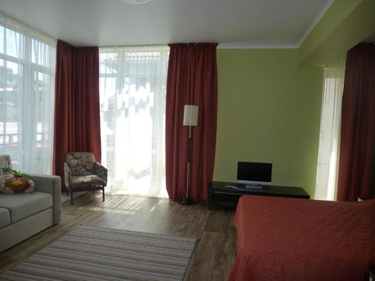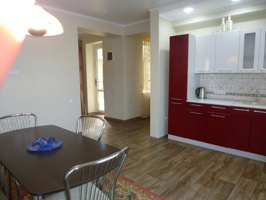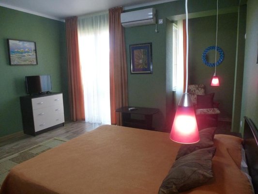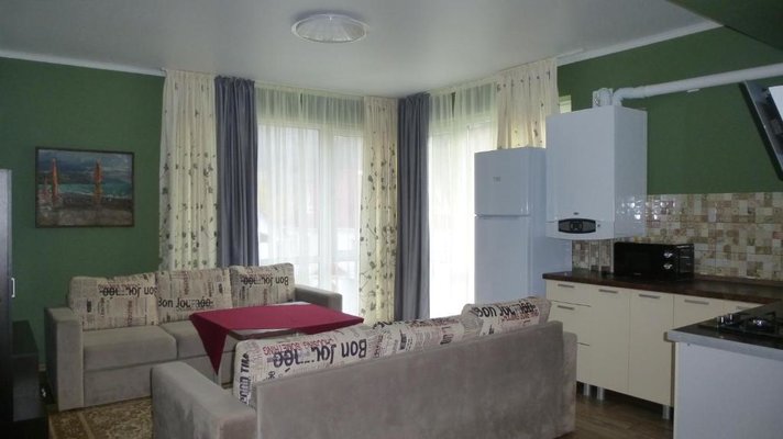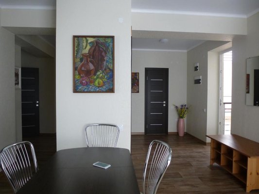 Для размещения предлагаются апартаменты вместимостью до двенадцати персон. В основе оформления комнат лежит европейский стиль, преобладают светлые тона и есть яркие акценты. Все эти детали гармонично сочетаются между собой и хорошо смотрятся.