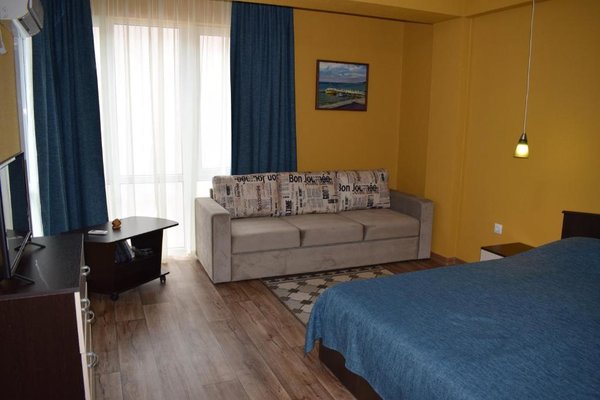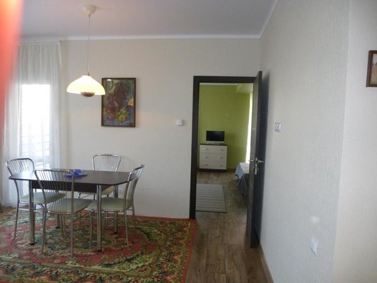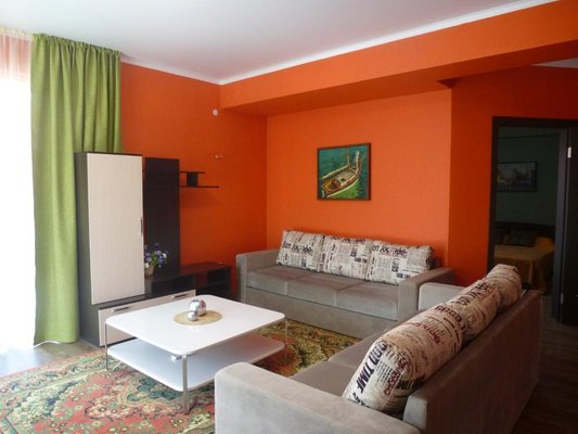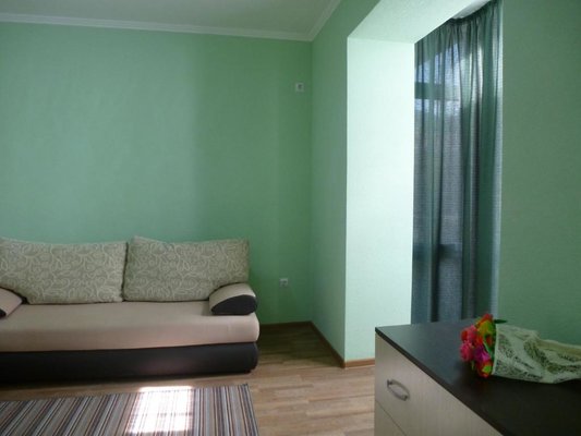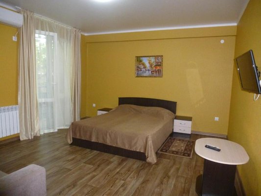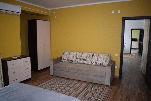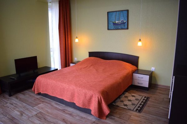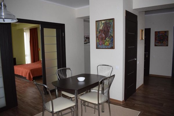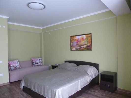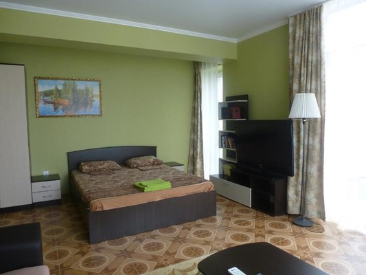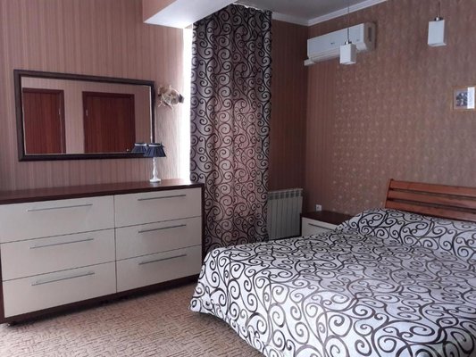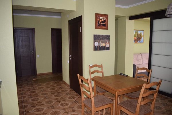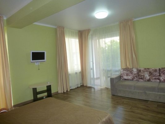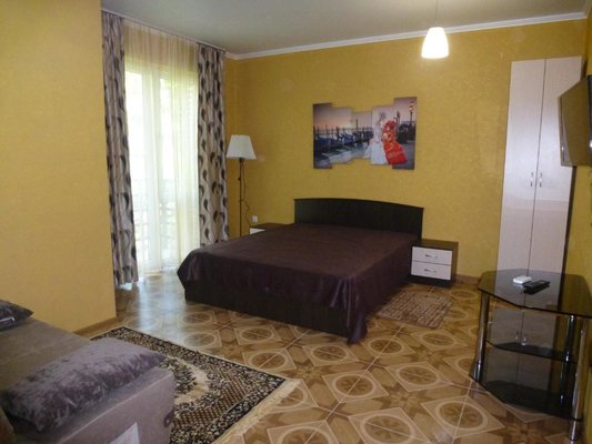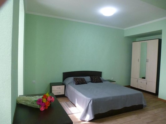 Для размещения предлагаются апартаменты вместимостью до двенадцати персон. В основе оформления комнат лежит европейский стиль, преобладают светлые тона и есть яркие акценты. Все эти детали гармонично сочетаются между собой и хорошо смотрятся.