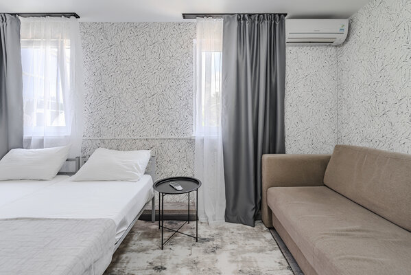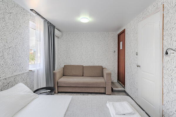 Просторные номера гостевого дома оборудованы комфортабельными кроватями, кондиционерами для поддержания приятной температуры, современными телевизорами с плоским экраном и вместительными шкафами для хранения вещей. Каждый номер оснащен собственной ванной комнатой со всеми необходимыми удобствами: набором полотенец, туалетными принадлежностями, унитазом, раковиной и феном.