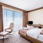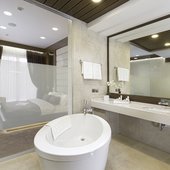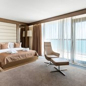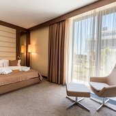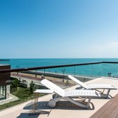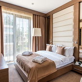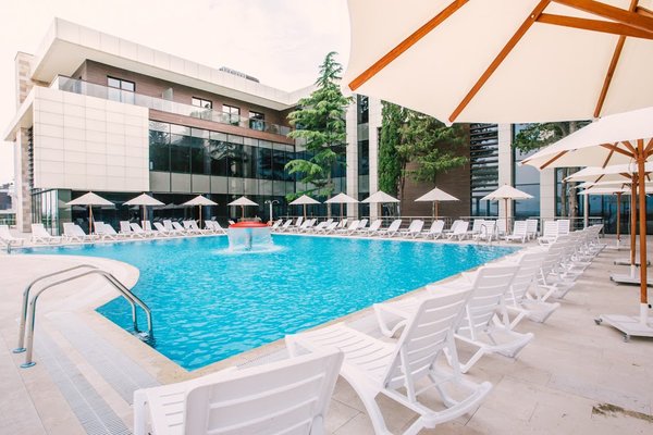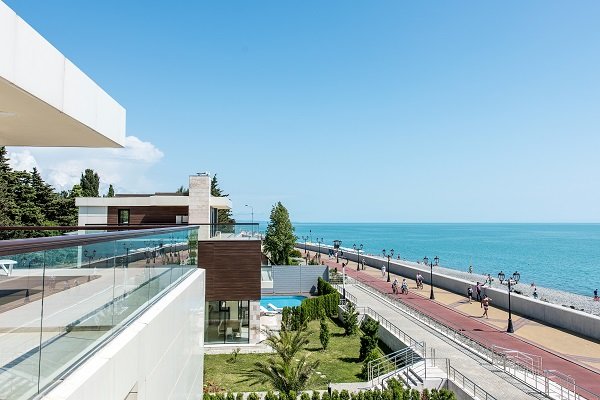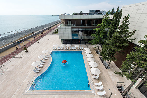 К вашим услугам – закрытые от посторонних глаз субтропической зеленью – виллы с собственным садом и бассейном, элегантные номера и просторный пляж. А также – ресторан и бары, конференц-залы, охраняемая парковка, SPA-центр с аква-зоной, термальным комплексом, крытым и открытым бассейнами и тренажёрным залом. В тёплое время года работают летняя терраса ресторана и бара.