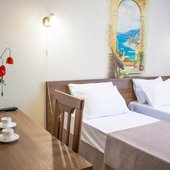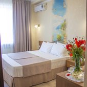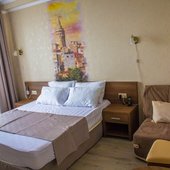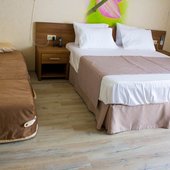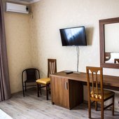 Дизайн интерьера в каждом номере продуман до мелочей, в номерах: кондиционер, телевизор, сейф, фен и холодильник, красивая мебель – все это непременные атрибуты отеля, в котором можно остановиться на отдыхе в Анапе.