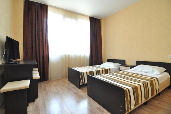 Самолетом до аэропорта г. Анапа, далее на маршрутном такси №113 до остановки «ЖД вокзал», далее першком или на такси 1,53 км до гостевого дома.